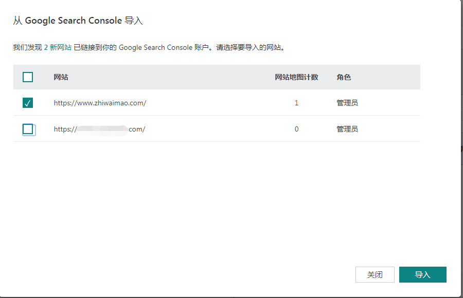 在Google Search Console导入中选择我们要导入网站,点击导入。